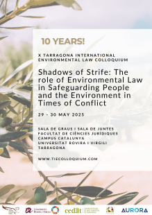 El X Coloquio Internacional de Derecho Ambiental de Tarragona (TIEC) - Sombras del Conflicto: El Rol del Derecho Ambiental en la Protección de las Personas y el Medio Ambiente en Tiempos de Conflictos, organizado conjuntamente por el Centro de Estudios de Derecho Ambiental de Tarragona (CEDAT-URV) y la Asociación de Alumnos y Exalumnos de Derecho Ambiental de Tarragona (AAEDAT), se celebrará los días 29 y 30 de mayo de 2025, tanto de forma presencial (en Tarragona) como en línea (a través de Microsoft Teams).