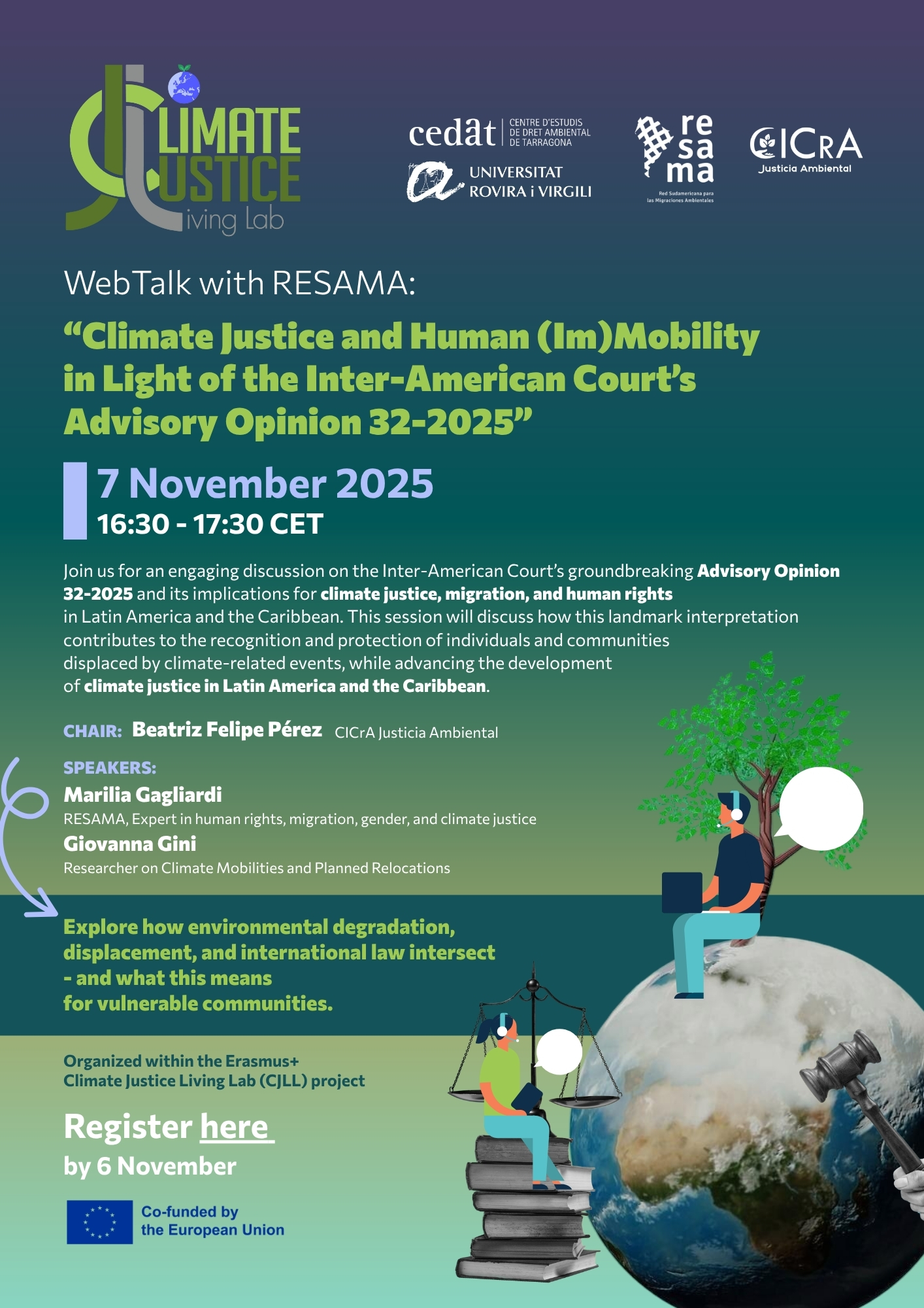 En el webtalk, que tendrá lugar el día 7 de noviembre a las 16:30 h (CET), analizaremos las intersecciones emergentes entre la justicia climática, la movilidad humana y los derechos humanos en el marco del sistema interamericano de derechos humanos.