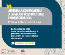 Abierta la convocatoria del Premio Antoni Pedrol i Rius a la mejor Tesis Doctoral en Derecho Local (VIII edición, 2025)