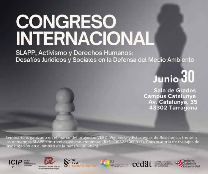 Organizado en el marco del proyecto: VERD: Vigilància i Estratègies de Resistència davant les demandes SLAPP contra l'activisme ambiental (Ref. ICI03725000017). Convocatòria de treballs de recerca en l'àmbit de la pau (R-ICIP 2025)